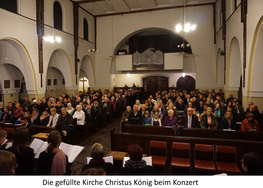 Insbesondere danken wir der katholischen Kirche Christus König in Adlershof, dass sie ihre Kirchenräume für unser traditionelles Adventskonzert, das wir aus räumlichen Gründen in unserer Gemeinde in der Handjerystraße so nicht hätten durchführen können, zur Verfügung gestellt hat. Und so konnten wir gleich zweimal etwa insgesamt 400 Zuhörer erfreuen, die sich mit sehr freudigem Beifall für unseren Gesang bedankten.